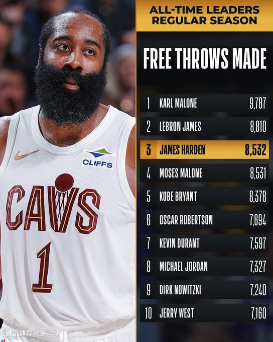 北京时间3月2日,NBA常规赛骑士客场106-102击败篮网,由于拇指骨折,哈登连续休战2场后带伤复出,全场出战36分钟,9投5中、三分7中4、罚球12中8拿到22分9篮板8助攻,出现5次失误2次犯规;哈登带伤回归,生涯罚球命中数超越摩西-马龙升到历史第三位。