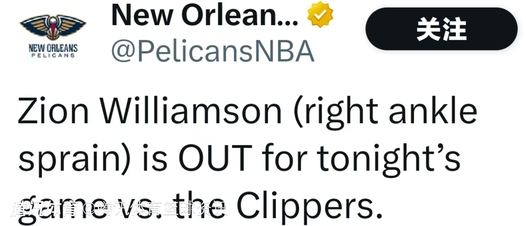 北京时间3月2日,NBA常规赛继续进行,鹈鹕对阵快船。赛前,鹈鹕官方发布公告,宣布核心球员锡安因右脚踝扭伤,确定缺席今日对阵快船的常规赛,其个人职业生涯最长的连续出战纪录也因此终结,该纪录停留在35场。