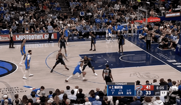 亚历山大面对克里蒂斯防守,持球加速突破完成逆天隔扣,鼓舞全队士气。不过独行侠还是凭借着顽强的反击表现,成功缩小分差到9分进入下半场。亚历山大上半场投篮10中6,贡献13分4篮板3助攻2抢断。
