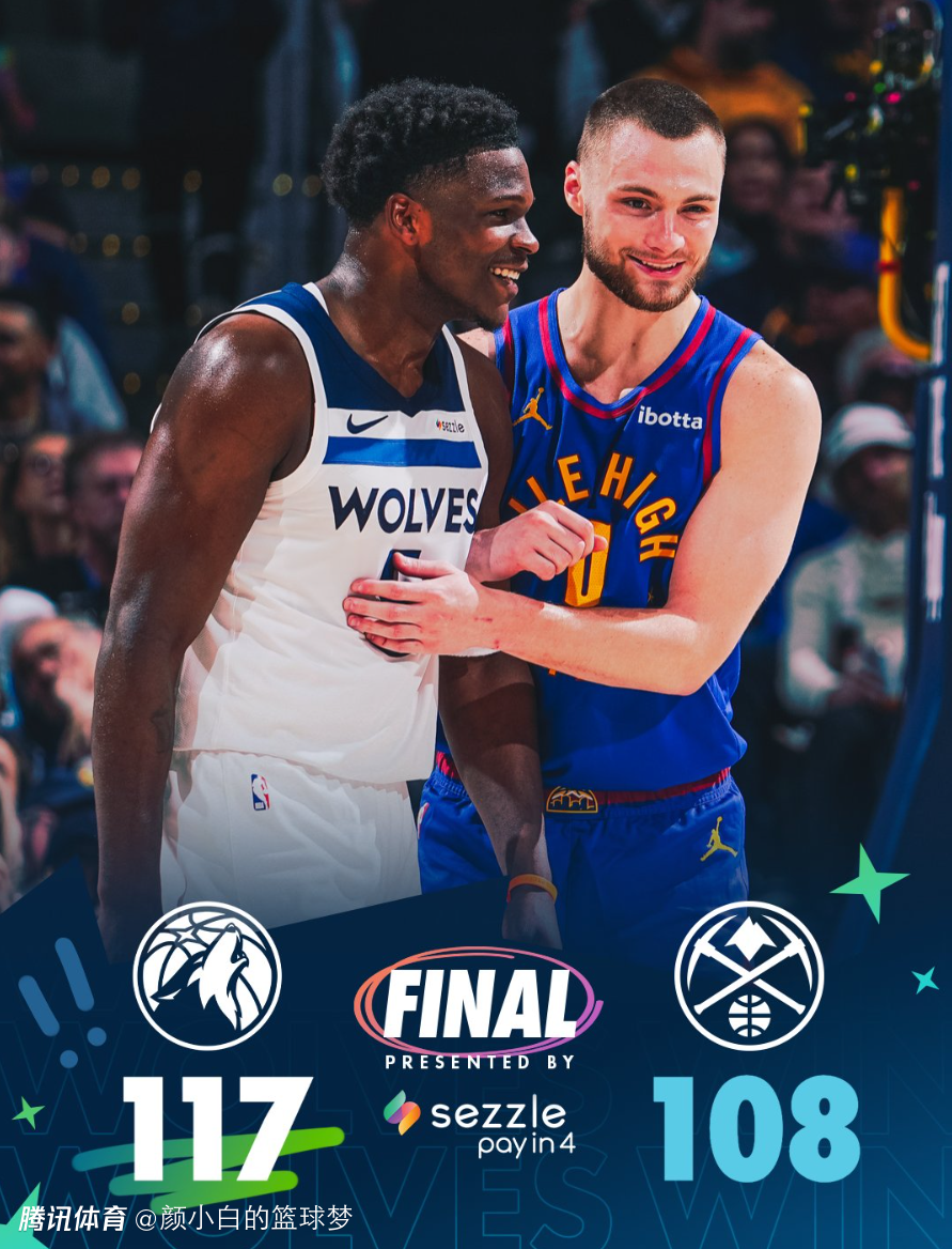 森林狼险胜掘金后拿到三连胜,他们与掘金的卡位战赢下后已经跟掘金拉开1个胜场;