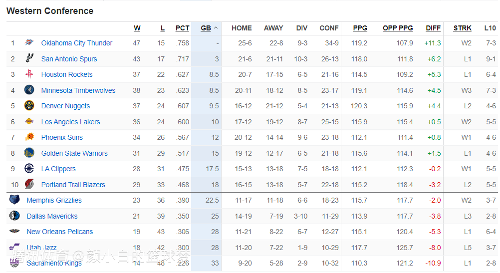 北京时间3月2日对于NBA来说是大比赛日,多场西部的比赛对西部的格局又出现了一些影响,比如森林狼击败掘金后已经豪取三连胜排名也升至西部第四,火箭还是西部第三,快船击败鹈鹕后再度升到西部第九。