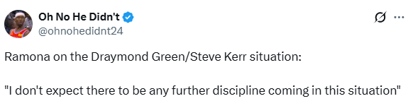 对于勇士将帅争吵,名记Ramona Shelburne表示:我预计在这种情况下不会再有任何进一步的纪律处分。
