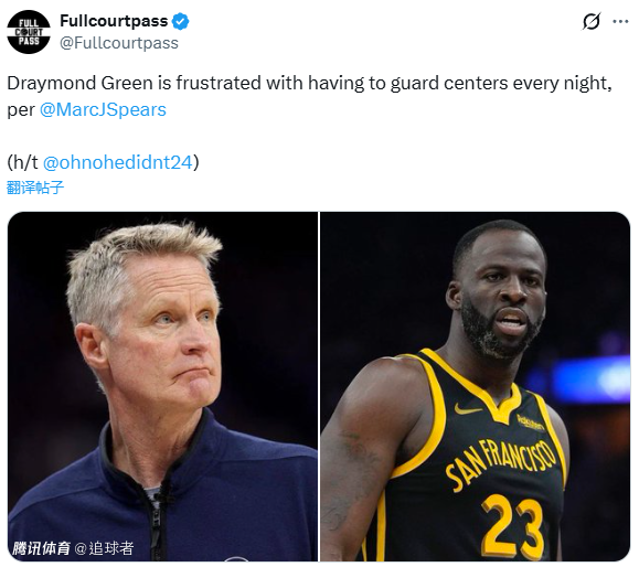 北京时间12月24日,勇士将帅内讧疑似早有前兆,据名记Marc J. Spears报道,德雷蒙德-格林对每晚都要防守对方球队的中锋感到沮丧,众人热议追梦科尔的激烈争吵事件。