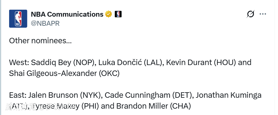 北京时间3月3日,NBA官方公布了第19周的周最佳球员,森林狼的爱德华兹当选西部周最佳球员,这是他本赛季首次当选,也是生涯第三次当选。活塞的杜伦当选东部周最佳球员,这是他生涯首次获得这一奖项。