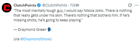 “所以要说近些年的话,显然这么多年来情况也有变化,我也和科比、詹姆斯交过手,但论近些年,约基奇的心理素质,真的没话说。”