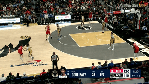 比赛开始还剩10分49秒时,申京突破勾手投篮命中,为火箭先拔头筹。随后在第一节还剩10分21秒至还剩8分4秒时,约翰逊、乔治和库利巴利连续命中三记三分,将比分从4:3反超到6:11,奇才首节外线火力全开并在零失误的前提下,依靠莱利罚球和沃特金斯急停跳投,首节以30:26领先结束。