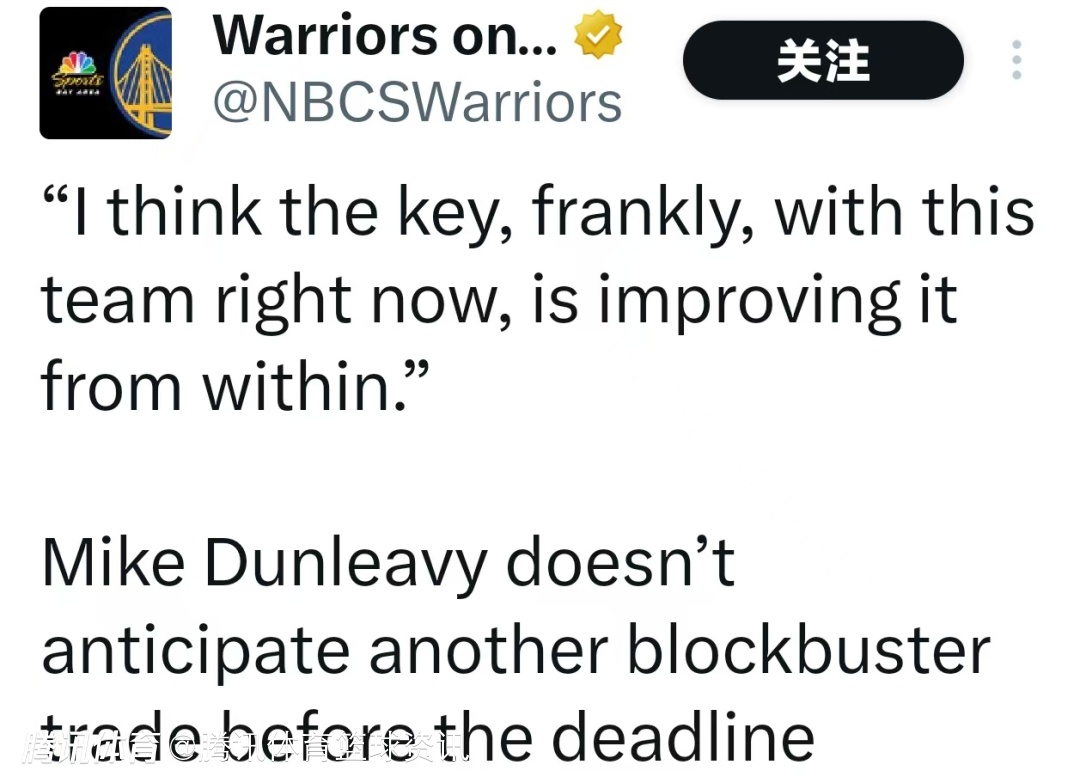 北京时间12月24日,勇士球队总经理邓利维在参加直播节目时,谈及是否会在2月6日交易截止日前促成重磅交易。