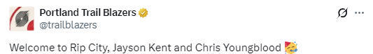 值得一提的是,开拓者队官方社交媒体随后也发文并晒出了杰森-肯特与扬布拉德的照片,欢迎两人加入开拓者队。此前,开拓者队也与扬布拉德签下了一份双向合同。本赛季扬布拉德曾代表雷霆队出场32场,场均可以得到2分0.9篮板,投篮命中率为33.3%。