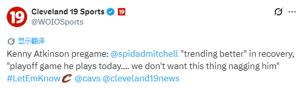 谈到多诺万-米切尔,阿特金森表示:“他的恢复情况正在好转,今天这种季后赛级别的比赛……我们不想让他带伤硬撑。”