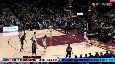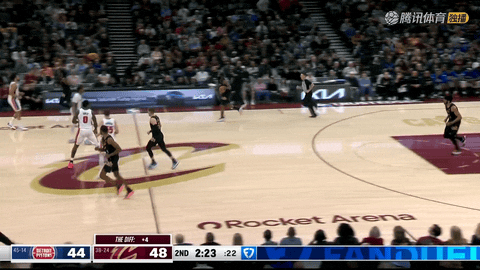 第二节还剩11分14秒到还剩1分30秒期间,骑士外线火力全开,全队单节命中6记三分球,外线得分达到20分,布莱恩特、泰森、施罗德、梅里尔和哈登轮番命中远投,帮助球队从落后4分反超并建立7分优势,为之后的主导局面打下基础。