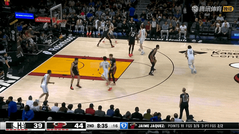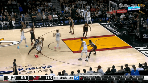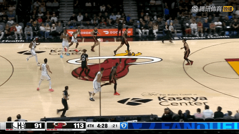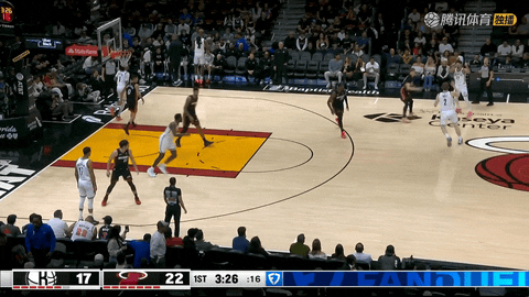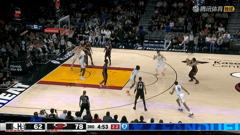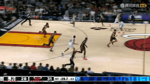 节末还剩4秒时,维金斯接雅库奇奥尼斯传球跑动扣篮命中,帮助热火带着69:54的比分进入半场休息。