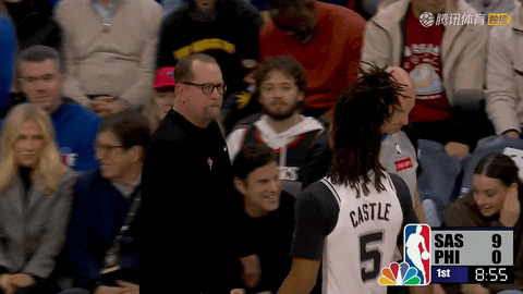 与此同时,马刺从第四节还剩10分55秒到5分57秒陷入5分钟得分荒,直到沃特斯在还剩5分57秒时命中三分才止血,期间76人将分差从45分追至40分,但已无力回天。