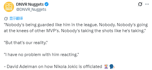 北京时间3月5日,掘金主帅阿德尔曼在球队训练结束后接受媒体采访,谈及约基奇所受到的吹罚尺度。