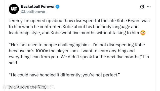 北京时间3月5日,林书豪近日公开透露,已故球星科比-布莱恩特曾对他展现出极度冷漠的态度。起因是林书豪曾当面指出科比在比赛中的消极肢体语言与领导力问题,随后科比整整五个月没和他说过一句话。