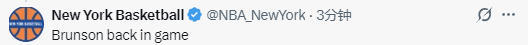 北京时间3月5日,NBA常规赛继续进行,尼克斯队对阵雷霆队。本场比赛进行到第三节,布伦森疑似腿部受伤,返回更衣室。在经过简单检查之后,布伦森已经重返赛场。