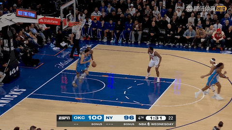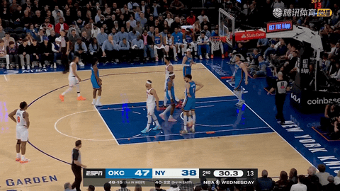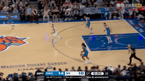 首节还剩6分33秒时,霍姆格伦先是突破挑篮得分,随后在还剩6分9秒和4分39秒时两度命中三分,短短2分钟连取8分,帮助雷霆把比分拉开到20:10。首节还剩2秒时,阿奴诺比接布伦森助攻命中三分,尼克斯追至23:25结束首节。