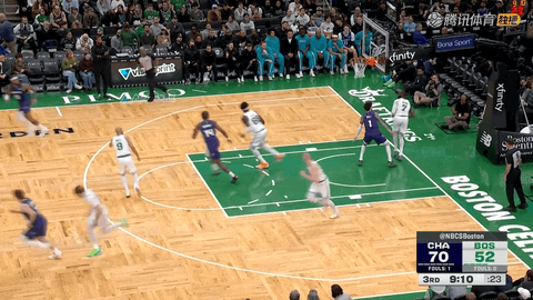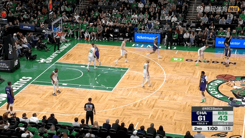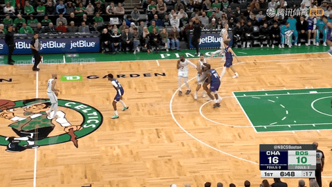 黄蜂队前锋迪亚巴特和凯尔特人队中锋凯塔跳球后,第一节还剩11分44秒时,迪亚巴特突破扣篮命中拿下本场首分,随后鲍尔突破挑篮再添2分,黄蜂开局打出攻势。