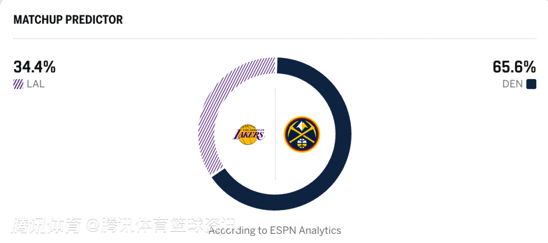 掘金65.6%,湖人34.4%