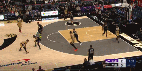 特雷杨今天迎来首发出场,他的亮相获得了奇才队主场球迷的热烈欢迎。比赛开始之后,特雷杨借助挡拆,很快完成一记突破上篮,打进奇才队生涯首球。不过本节后半段时间内,特雷杨三次三分出手全部偏出,首节得到2分2助攻。次节比赛中,特雷杨连续造成犯规命中罚球,随后他再次完成一记上篮,不过外线投篮还是不中,单节拿到5分1助攻1抢断。