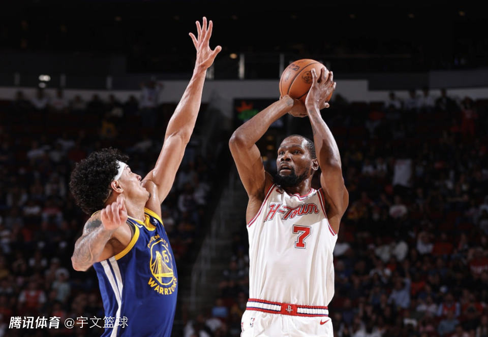 这是两队本赛季的第2次交手,首次对决杜兰特因个人事务缺席,如今库里因伤缺阵,杜兰特无缘与老队友展开顶峰对决。虽然火箭迎来小贾巴里-史密斯回归,但是杜兰特开局手感并不好,连续中投出手打铁,给到对手打出14-6的压制高潮的机会。
