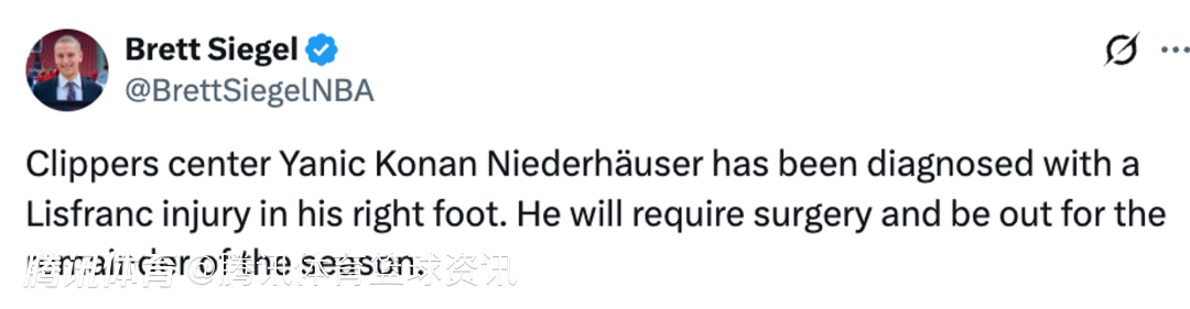 北京时间3月6日,据快船官方宣布,球队中锋尼德豪塞尔被诊断为右脚跖骨损伤,他将接受手术治疗,赛季报销,无缘本赛季剩余所有比赛。