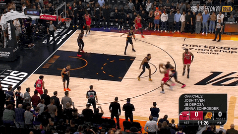 随后从第一节还剩9分28秒到还剩8分13秒,公牛连续5次防守成功,迫使太阳多次投篮打铁和失误,将比分从平局拉开到9:2,并在首节以零失误收官,24:20领先太阳。