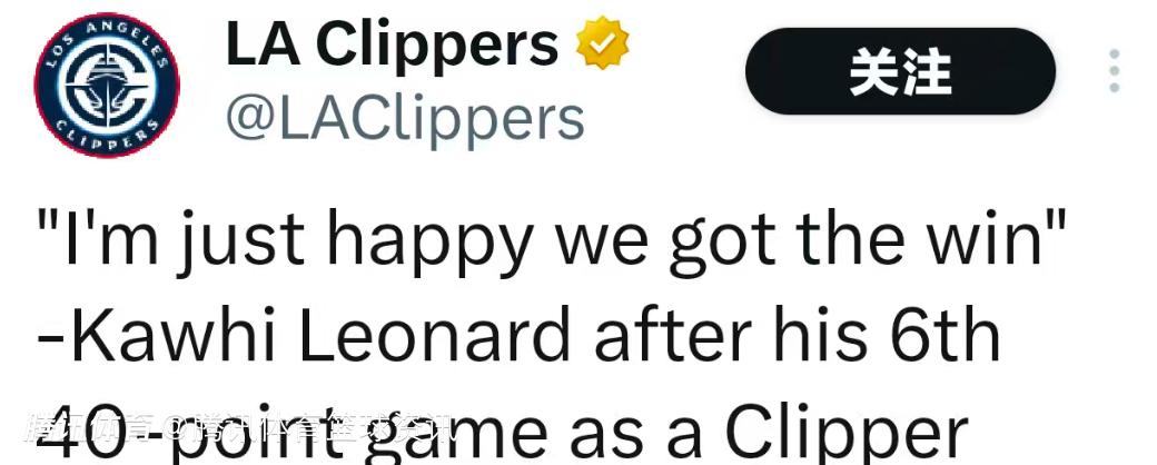本场比赛中,莱昂纳德拿到快船生涯第6次40+,追平哈登和路威并列队史第五。