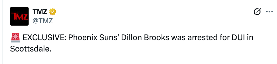 北京时间3月6日,据TMZ报道,太阳球员狄龙-布鲁克林于当地时间周五凌晨因酒驾被捕。