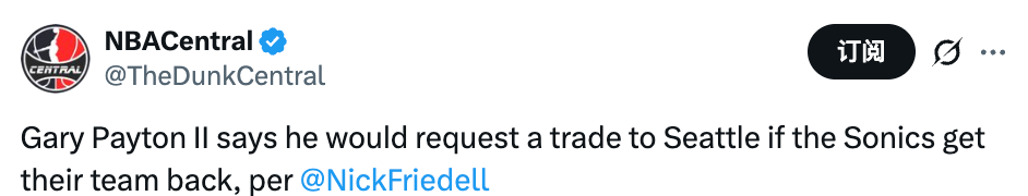 北京时间3月6日,据美记尼克-弗里德尔报道,小佩顿表示,如果西雅图超音速队能够重返NBA,他会主动申请被交易到西雅图。