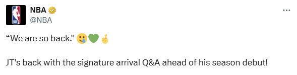 塔图姆本人在入场时也接受了简单采访,谈到了复出的感受。
