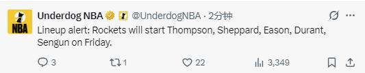 北京时间3月7日,NBA常规赛继续进行,火箭队对阵开拓者队。赛前,火箭队宣布,小贾巴里-史密斯因脚踝伤势将缺席本场比赛。乌度卡也调整首发阵容,重新启用谢泼德,让他联手伊森、杜兰特、申京和阿门-汤普森首发出战。开拓者队的首发阵容为克林根、亨德森、格兰特、卡马拉、霍勒迪。