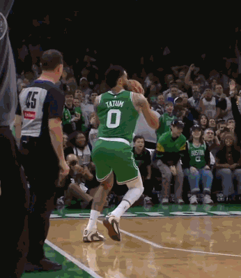 但在第二节比赛末尾,塔图姆终于找到了状态。上半场比赛结束前1分16秒,普里查德三分远投不中,塔图姆篮下高高跃起完成补扣,完成了自己复出后的首次得分。而在下一个进攻回合,塔图姆又接到队友助攻,后撤步三分远投命中,找回状态的同时,也点燃了凯尔特人队的主场。