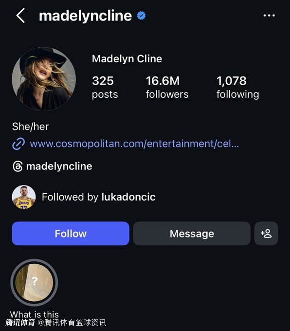 此外,有眼尖网友捕捉到更多细节:东契奇近期在Instagram频繁点赞女模特,还关注了28岁美国女演员Madelyn Cline(代表作《外滩探秘》),目前Madelyn有男友但并未订婚。