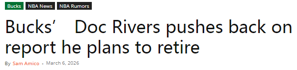 北京时间3月7日,雄鹿队主帅里弗斯表示,有关他即将退休的说法为时尚早。