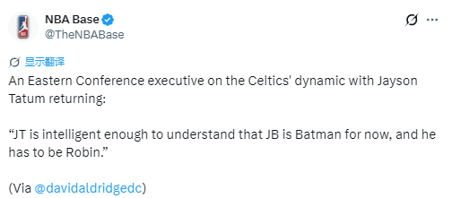 东部某高管直言:“塔图姆很聪明,他明白现在布朗是蝙蝠侠,他可以当好罗宾。”