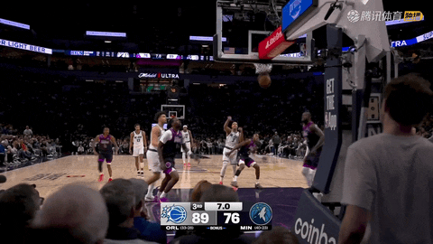 第三节还剩3分45秒时,席尔瓦上篮命中,成为球队第5位得分上双的球员,此后魔术从比分持平逐渐建立起20分的领先。第三节还剩2分35秒至1分3秒期间,森林狼由爱德华兹两次站上罚球线并命中一记三分,兰德尔完成跑动扣篮,在1分32秒内连续5次进攻得分,将比分追至88-76。