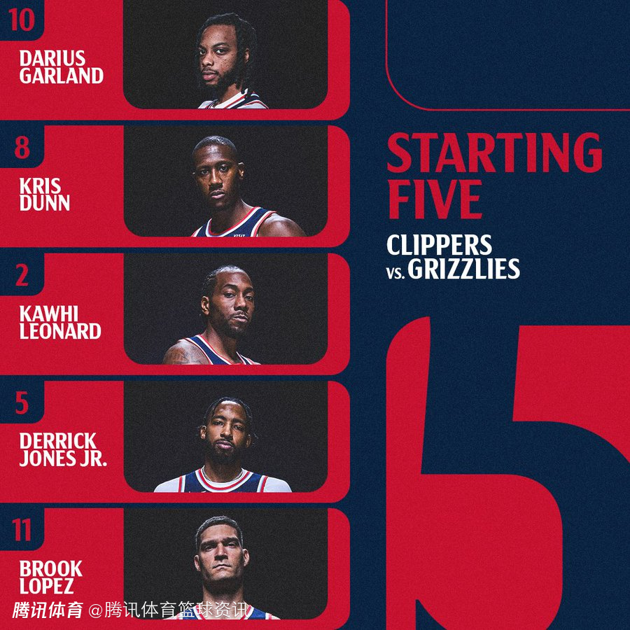 快船首发五人为:加兰、邓恩、莱昂纳德、小德里克-琼斯、大洛。