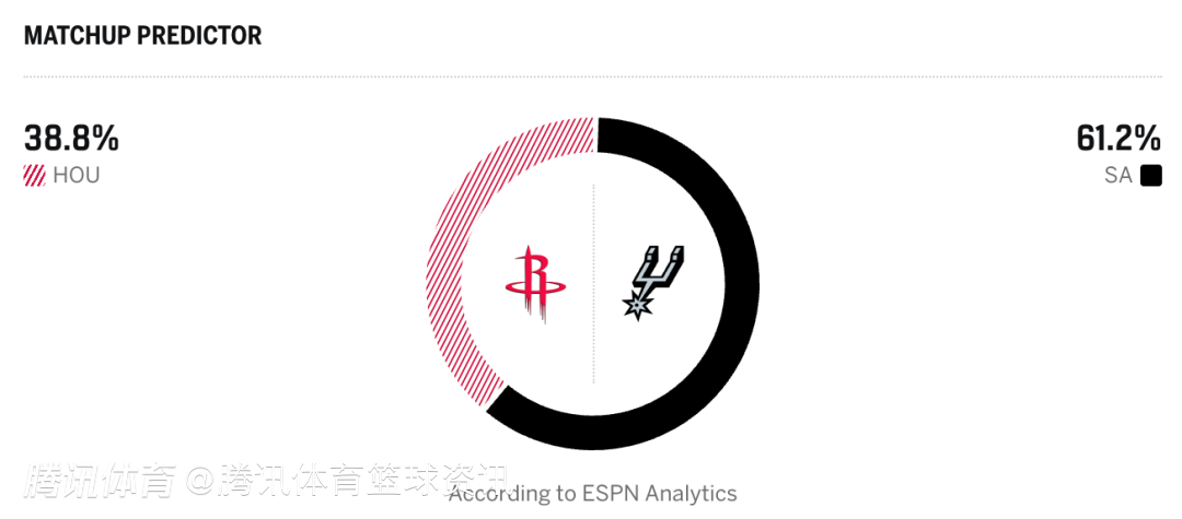 火箭38.8%,马刺61.2%
