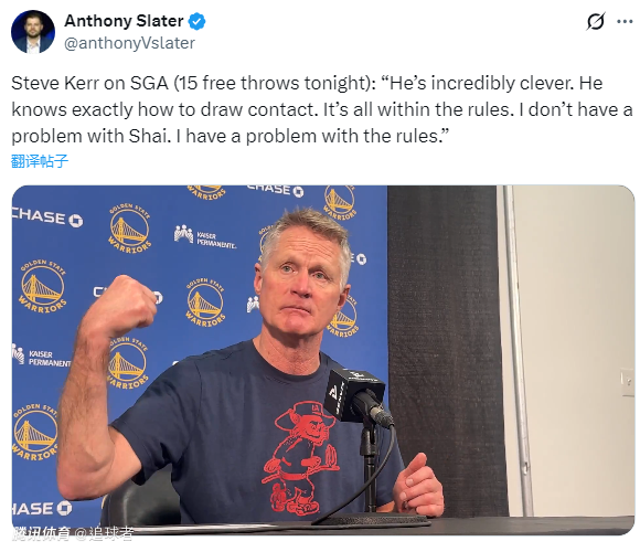 继续说道:我认为,我们联盟几乎不允许防守者对持球人做防守动作,但是却允许进攻球员用非持球手推开防守来创造空间,这对防守来说是非常困难的。你不能上手,你一上手,联盟里的每个人都会勾你的手臂,就像SGA和哈登一样。这些都是规则的一部分,球员们都很聪明、很会利用规则。