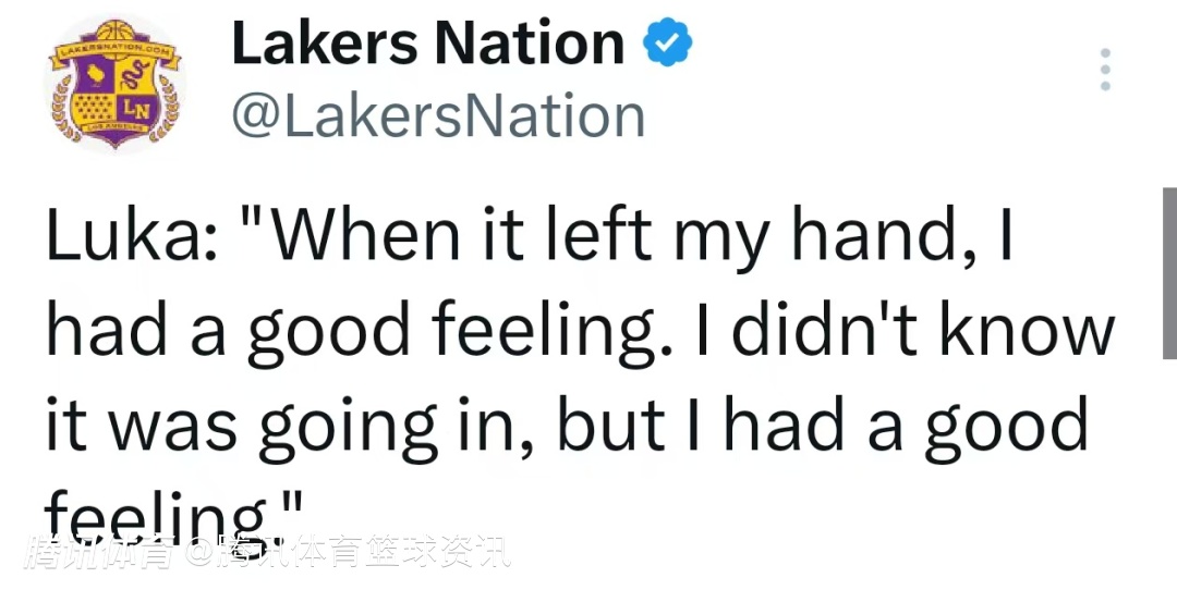 东契奇:是啊,这球确实很难,但球一出手,我就感觉有了。你知道,这种球我偶尔能进,这就是我的球。