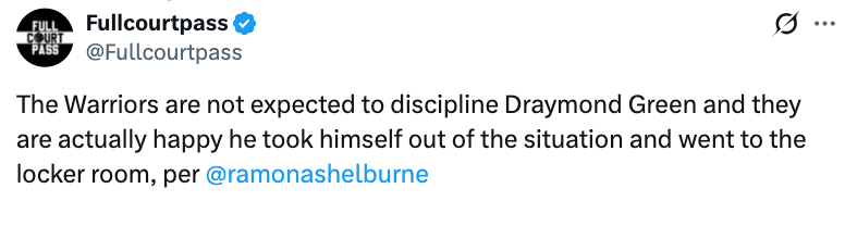北京时间12月25日,据美记拉莫娜-谢尔伯恩报道,勇士预计不会对追梦就顶撞科尔一事进行处罚,反而对他主动脱身冲突、返回更衣室的做法感到欣慰。