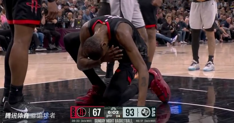 NBA德州内战,火箭开场14-24早早落后10分,文班下场后杜兰特带队13-2反超比分,之后两队僵持,第一节打完火箭32-33落后1分,杜兰特首节打满12分钟,6投4中拿到10分3篮板2助攻1盖帽;期间杜兰特积极拼抢地板球,双手抱球摔倒太拼了。