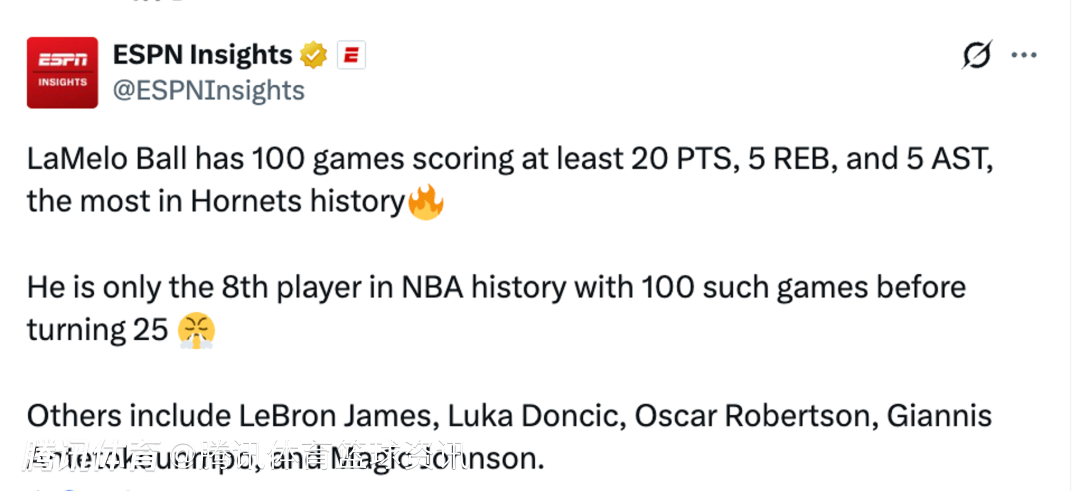 另外,他也是NBA历史上第八位在25岁前达成这一成就的球员,其余达成此成就的球星包括有詹姆斯、东契奇、奥斯卡-罗伯特森、字母哥、魔术师约翰逊。