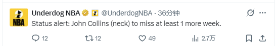 北京时间3月10日,NBA常规赛继续进行,快船队对阵尼克斯队。赛前,约翰-科林斯参加了快船队的场上训练,但根据多位快船队记者透露,科林斯仍将缺席本周的所有比赛,至少还要1周时间才能复出。