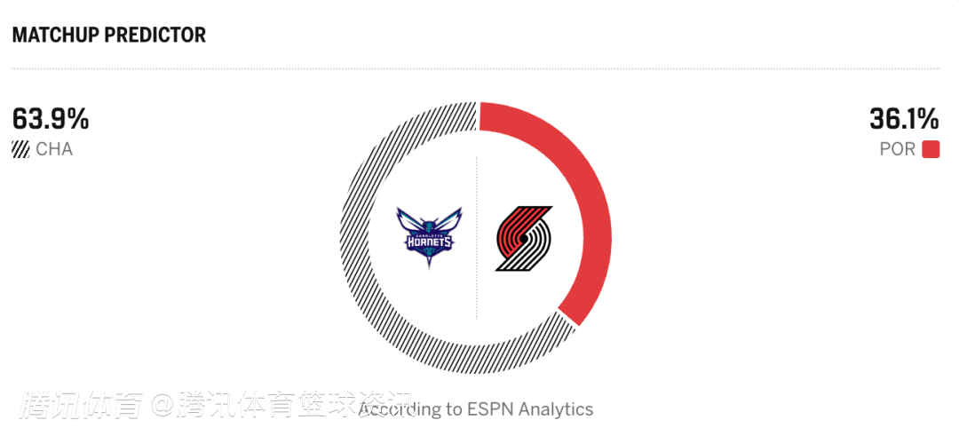 黄蜂63.9%,开拓者36.1%