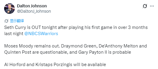 追梦、梅尔顿、波斯特出战成疑,
