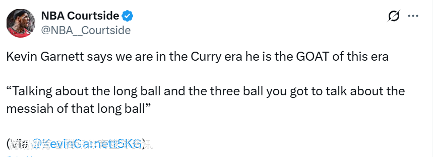 北京时间12月25日,NBA名宿加内特在直播节目中直言,斯蒂芬-库里是当下时代的历史最佳球员。