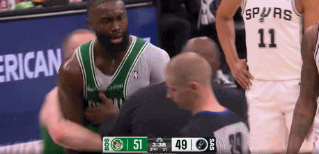 北京时间3月11日,NBA常规赛,凯尔特人客场对阵马刺,比赛第二节,杰伦-布朗被驱逐。