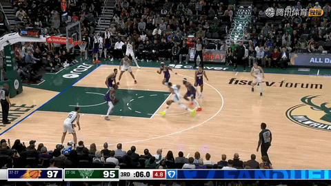 之后雄鹿在还剩8分39秒时由阿德托昆博跑动挑篮命中追成9平,但布克在还剩1分37秒时命中三分,阿伦又在还剩1分06秒时完成三分加罚,太阳从平局拉开到6分优势,首节以36:30领先。