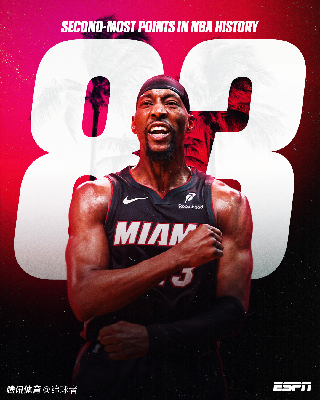 4、阿德巴约创造NBA历史上出场时间最少的单场80+,科比为42分钟,张伯伦为48分钟。
